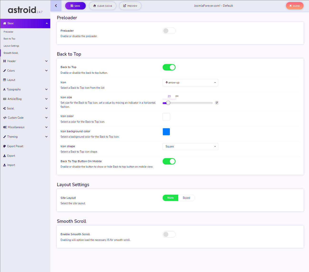 JoomDev’s Astroid FrameWork is advanced but yet easy to use modern FrameWork. It offers high-quality functionalities. It is fully compatible with the future of Joomla (Joomla 4).